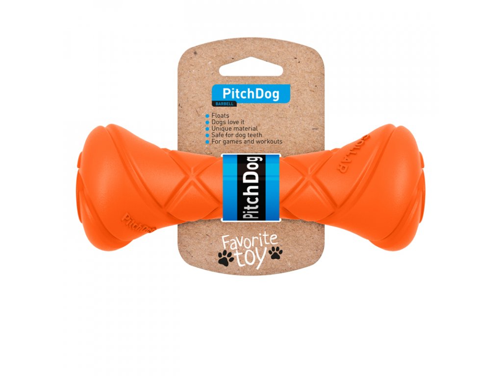 Nová hračka od PitchDog - jedinečná a funkční činka. Promyšlený anatomický tvar umožňuje psovi snadno zvednout činku ze země.
