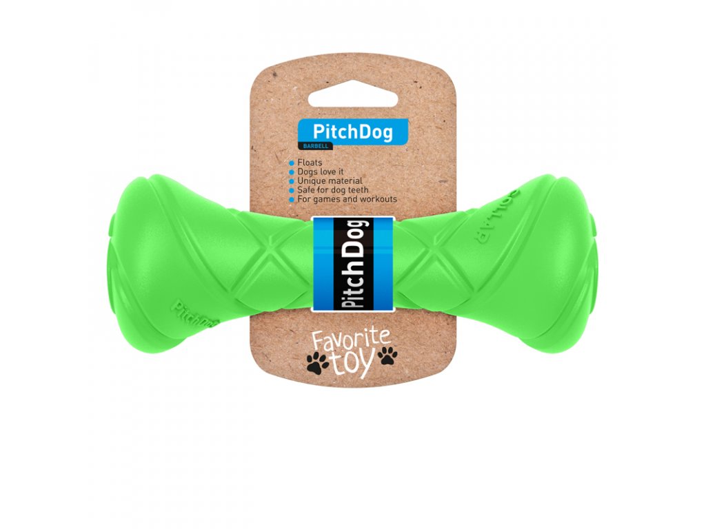 Nová hračka od PitchDog - jedinečná a funkční činka. Promyšlený anatomický tvar umožňuje psovi snadno zvednout činku ze země.