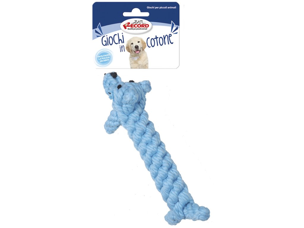Milá mimořádně pevná bavlněná hračka - je vlastně moderní uzel pro psa. Díky svému tvaru a pevnosti je ideální žvýkací hračkou na čištění zubů. Hračka je hustě tkaná a ma vysokou hmotnost na danou velikost.