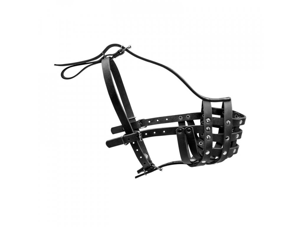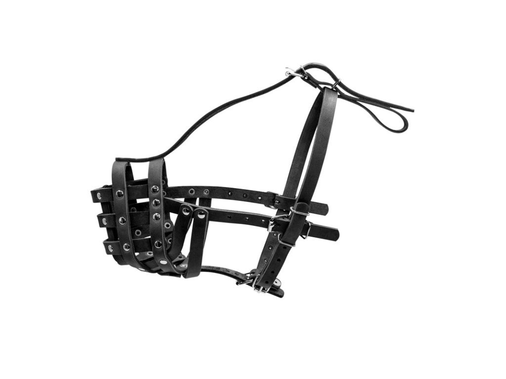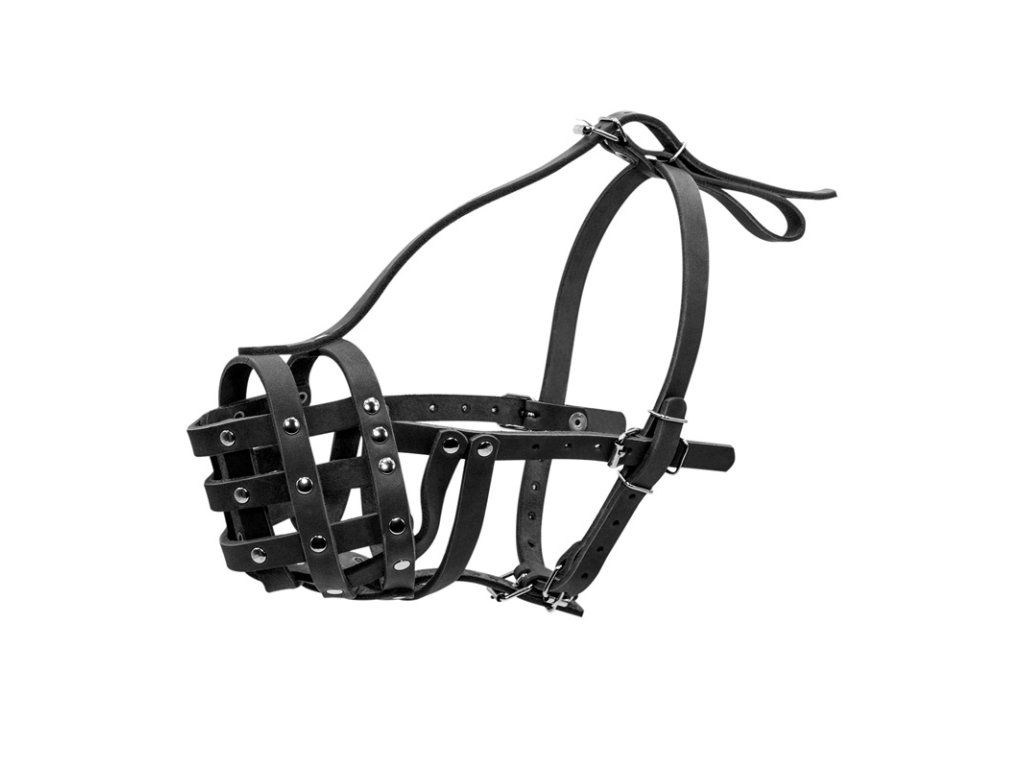 Nastavitelný náhubek pro psa černé barvy. Náhubek je ručně vyrobený z hovězí kůže, je velmi kvalitní, stylový a pevný. Kožený náhubek je vhodný pro plemena jako mastif, bullmastiff, rottweiler.