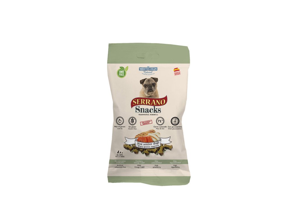 Měkké odměny pro psa MEDITERRANEAN NATURAL Serrano snacks pro seniory jsou nakrájené na malé kousky ve tvaru kosti a obsahují 71% masa. Ideální jako odměny při trénování nebo při vystavování psa. Perfektní odměna nebo pamlsek za dobré chování Vašeho domácího mazlíčka. Vhodné pro všechny velikosti psa.