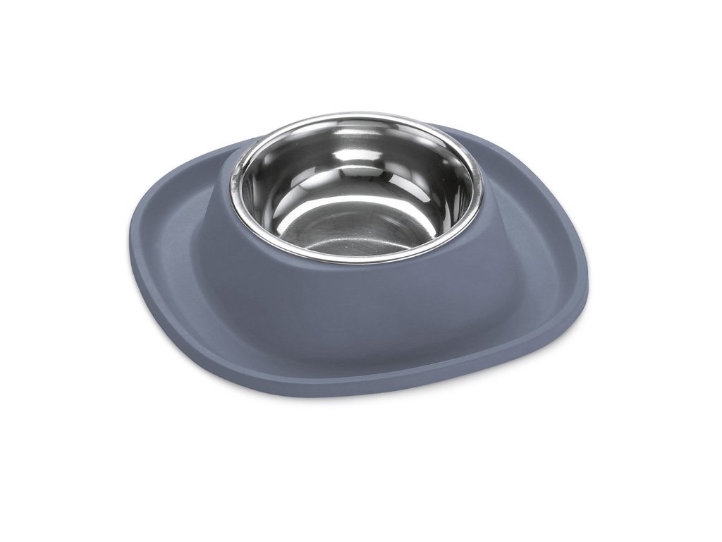 Misky pro psa s měkkou protiskluzovou základnou. Vyjímatelná nerezová miska se může používat samostatně. Protiskluzová základna se může používat jako samostatná miska. Široký okraj na jedné straně brání zašpinění okolí misky a slouží i jako podložka a zároveň jeho speciální vyvýšený tvar okraje a materiál je ideální ochrana proti mravencům. Misky se dají ukládat na sebe - jsou stohovatelné i při více psů tedy nezabírají mnoho místa. Nerezová vrchní miska poslouží i jako samostatná miska.