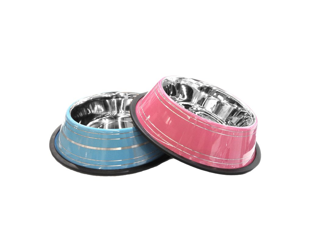 Elegantní praktická miska pro psa. Miska je lehká s enamelovou - glazovanou povrchovou úpravou. Miska vyrobená z nerezu s protiskluzovou gumičkou po obvodu.