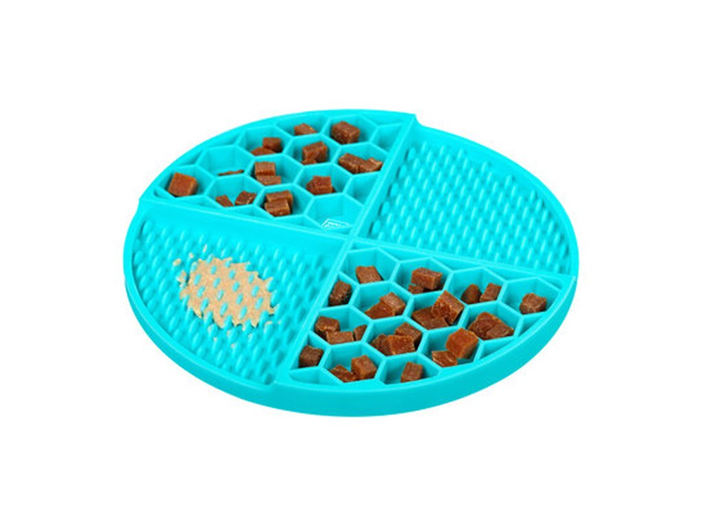 Podložka pro pomalé krmení je určena pro psy a kočky a je vhodná pro mokré i suché krmivo. Používání této podložky pomáhá zpomalit pojídání vašeho domácího mazlíčka, zlepšuje trávení, podporuje ústní hygienu a pomáhá udržovat zdravou hmotnost vašeho domácího mazlíčka. Lízání zvyšuje chuťové vnímání, což umožňuje zvířatům vychutnat malé množství potravy.