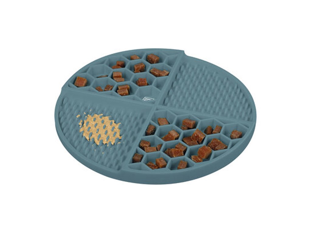 Podložka pro pomalé krmení je určena pro psy a kočky a je vhodná pro mokré i suché krmivo. Používání této podložky pomáhá zpomalit pojídání vašeho domácího mazlíčka, zlepšuje trávení, podporuje ústní hygienu a pomáhá udržovat zdravou hmotnost vašeho domácího mazlíčka. Lízání zvyšuje chuťové vnímání, což umožňuje zvířatům vychutnat malé množství potravy.
