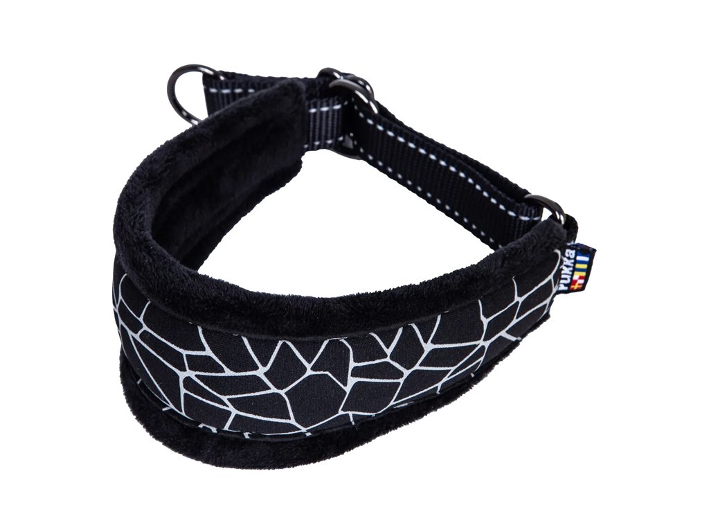 Široký a měkký polstrovaný obojek vyrobený pro psy s dlouhým a úzkým krkem. Měkký stahovací obojek je příjemný na nošení. Tento praktický obojek se snadno a rychle nasune na hlavu vašeho psa. Díky měkké podšívce obojek nepoškodí jemnou srst psa. Má stylový reflexní potisk a prošívání.