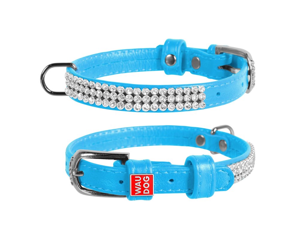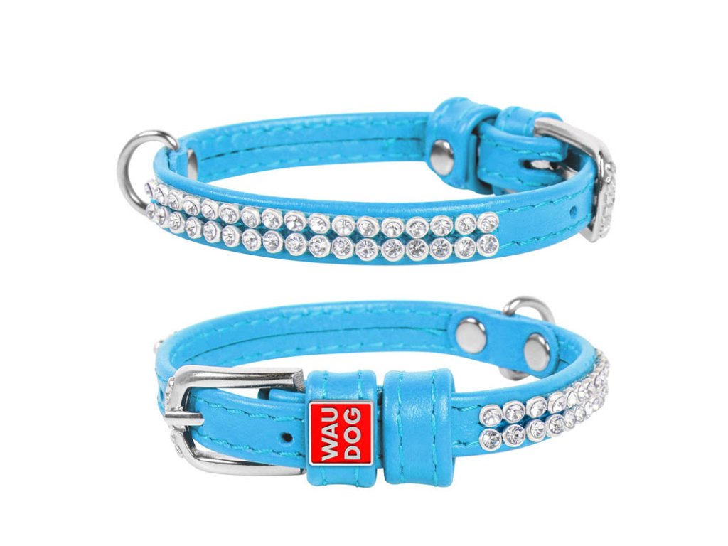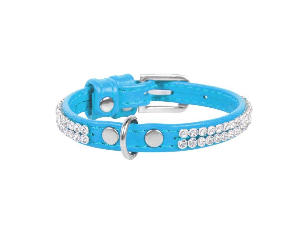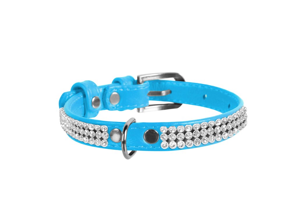 Atraktivní obojky z přírodní kůže zdobené kamínky. Tyto obojky jsou součástí naší kolekce s krystaly a stanou se stylovým doplňkem vašeho domácího mazlíčka. Jsou vyrobeny z vysoce kvalitní dvouvrstvé měkké, ale odolné kůže a jsou vhodné pro psy s citlivou kůží. Tyto modré ručně šité obojky se vyrábějí ve 3 velikostech a bude vyhovovat všem psům od štěňat až po velká plemena. Jsou lehké, měkké, odolné, silné a pohodlné. Počet řádků krystalů závisí na velikosti obojku.