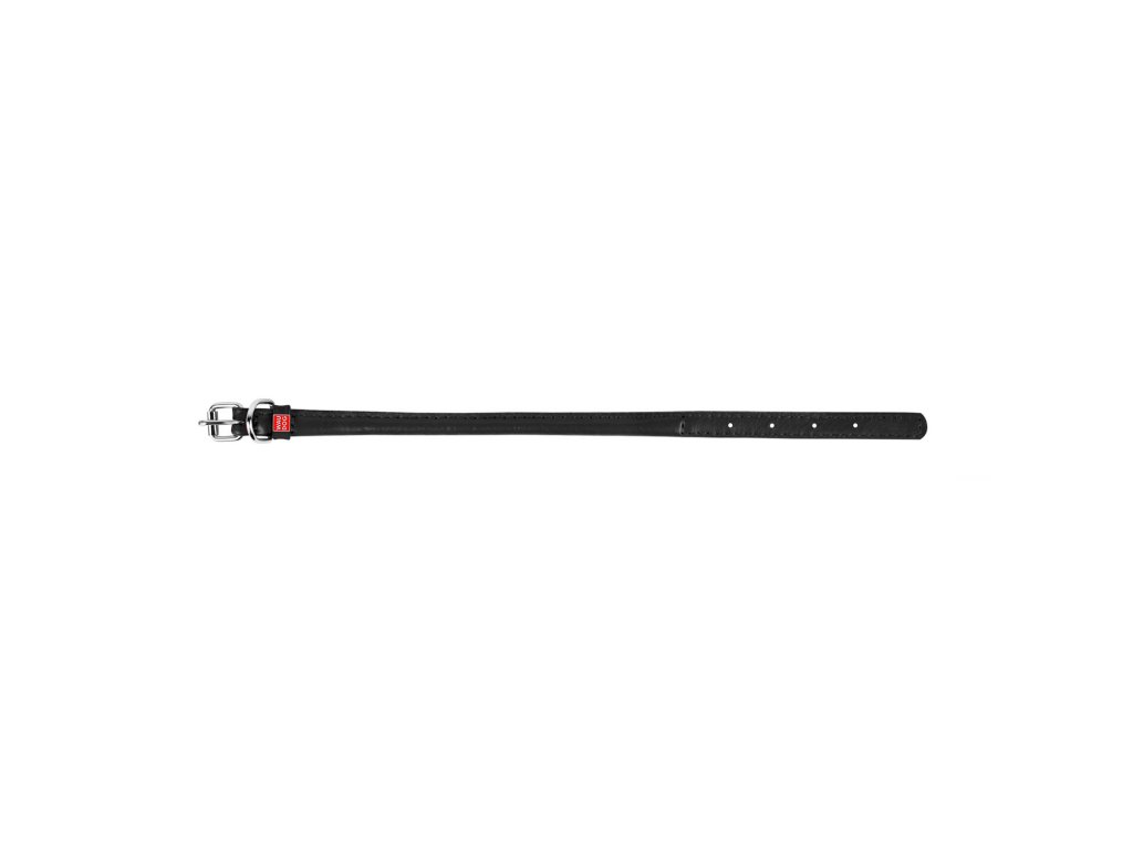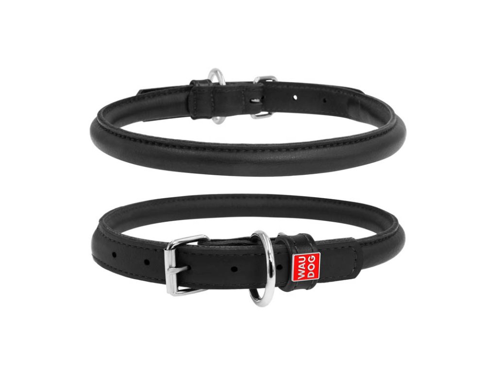 Ručně šitý černý kulatý obojek pro psy z přírodní hovězí kůže. Tento lehký měkký obojek je vyroben z měkké, ale odolné kůže, která se hodí pro psa s citlivou kůží. Kulaté obojky jsou vhodné zejména pro psy s dlouhými hustými chlupy, protože kulatý tvar předchází zamotání a zničení srsti kolem krku vašeho domácího mazlíčka. Také vypadají skvěle na psech s krátkou srstí. Tento černý kulatý obojek máme v 7 velikostech a proto bude vyhovovat každému psovi od miniaturních až po velká plemena. Obojek má uvnitř nylonové lano, které zajišťuje jeho pevnost a tvar.