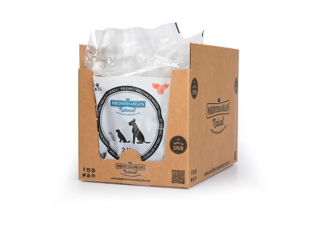 Sušené balenévepřové uši pro psy MEDITERRANEAN NATURAL Pig ears. Vepřové uši nejsou vařené, ale vystaveny přirozenému procesu sušení, aby se zachovaly všechny nutriční hodnoty. Jde o ideální občerstvení na zesílení dásní a čištění zubního kamene ze zubů Vašeho psa.