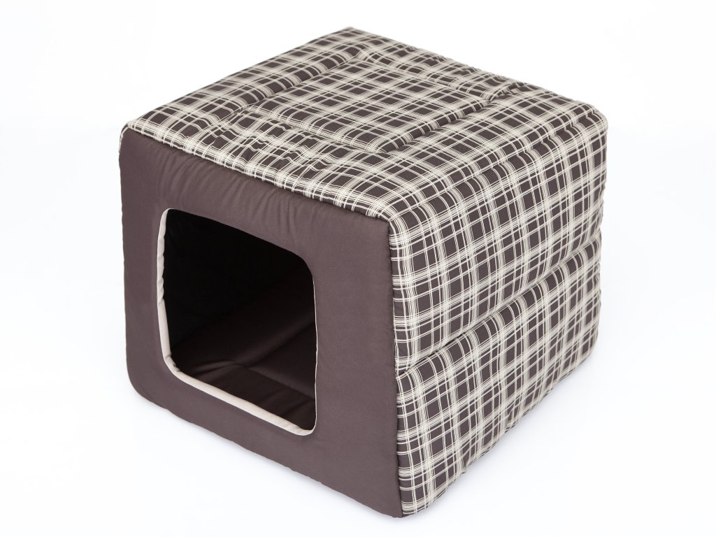 Pelíšek pro psa ve tvaru budky černé barvy s tlapkami 2 v 1. Možnost složení na klasický pelíšek. Pelíšek je vyroben z netkaného polypropylenu, a CORDURY. Pelíšek je pratelný v 30 ° C, má zvýšenou odolností proti poškrábání, proti vlhkosti, proti deformování a proti zašpinění (výška: 35cm, složená výška: 18cm, šířka: 45cm, délka: 45cm).