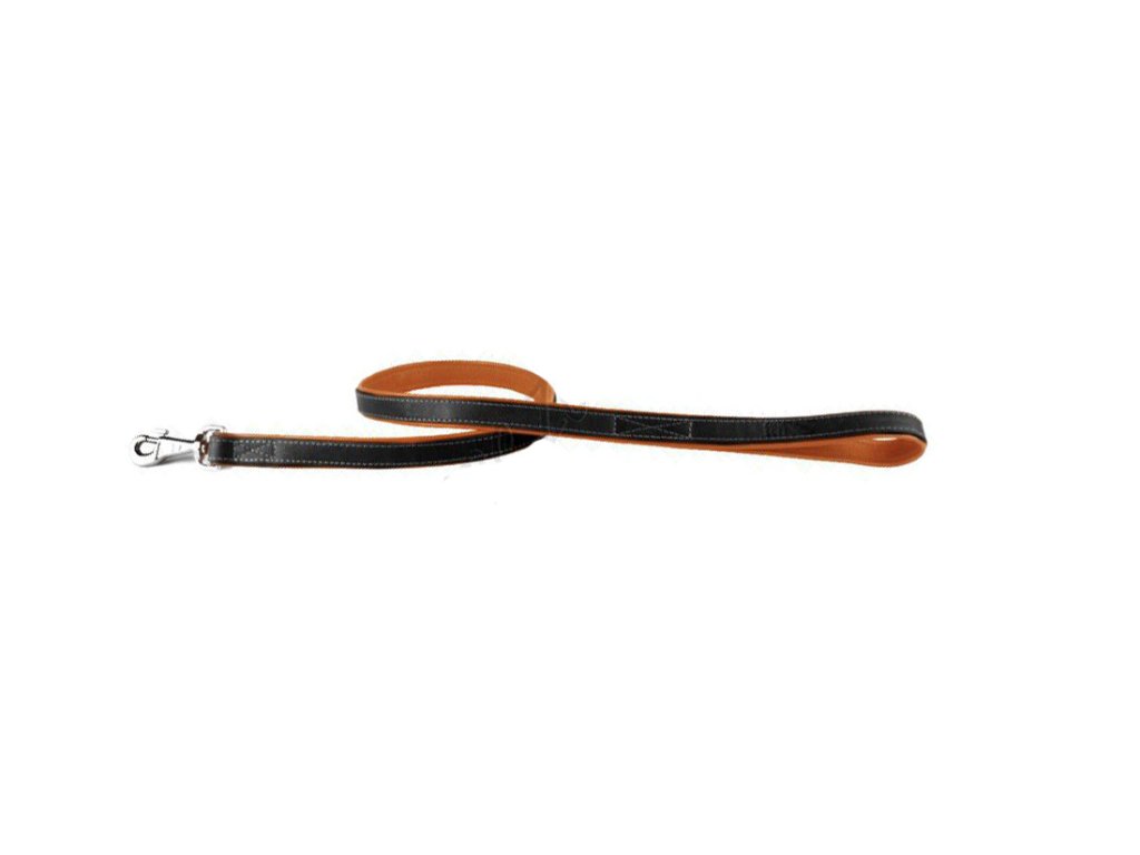 Ručně šité ploché velmi jemné a komfortní vodítko pro psa z přírodní jehněčí kůže. Vyrobeno z měkké polstrování kože.Vrchná část je černé barvy, spodní hnědé barvy. Používáme speciální obarvené kůže, které nezanechávají žádné stopy na srsti vašeho psa. Vodítko je velmi měkké, pohodlné, lehké, ale pevné a trvanlivé a výborně sedí do ruky. Délka vodítka 122cm.