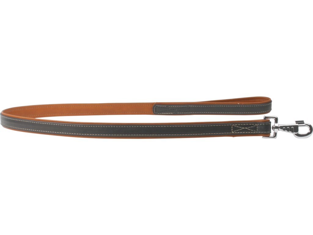 Ploché měkké vodítko černé s hnědým podkladem 122cm