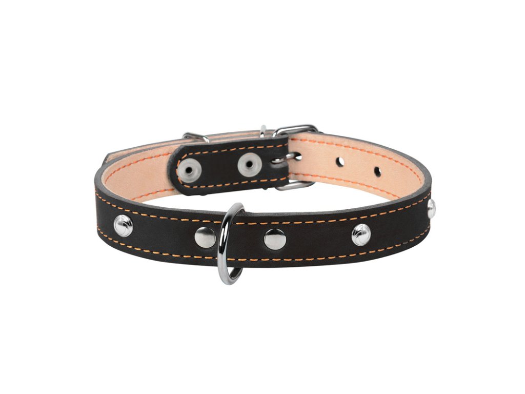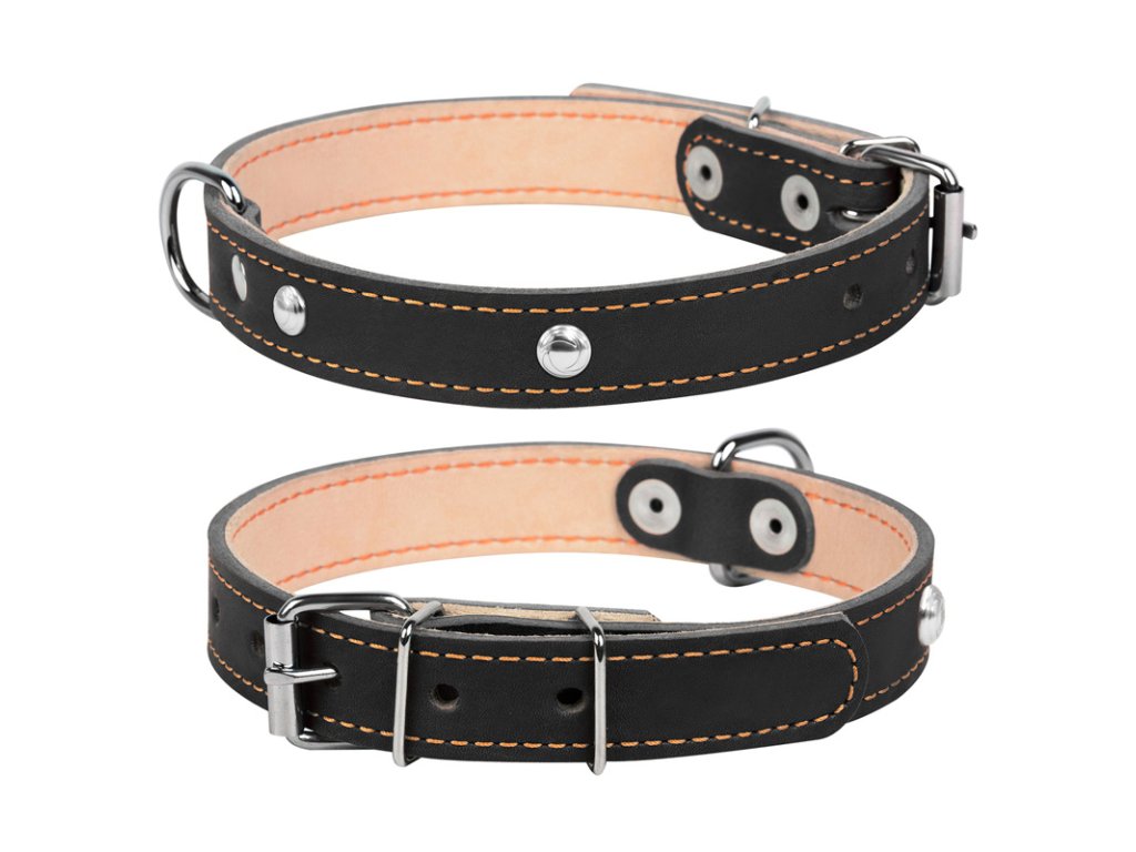 Tento ručně šitý obojek je vyroben ze dvou vrstev kvalitní hovězí kůže, která je prošívaná a zdobená kovovými ozdobami .. Vrchní strana obojku je vyrobena z tvrdé kůže, což jej činí pevným a trvanlivým a vnitřní strana je vyrobena z měkké kůže vhodné pro citlivou pokožku psy . Obojky se hodí pro všechny malá plemena. Výborně ukáží zejména na krátkosrtých plemenech.