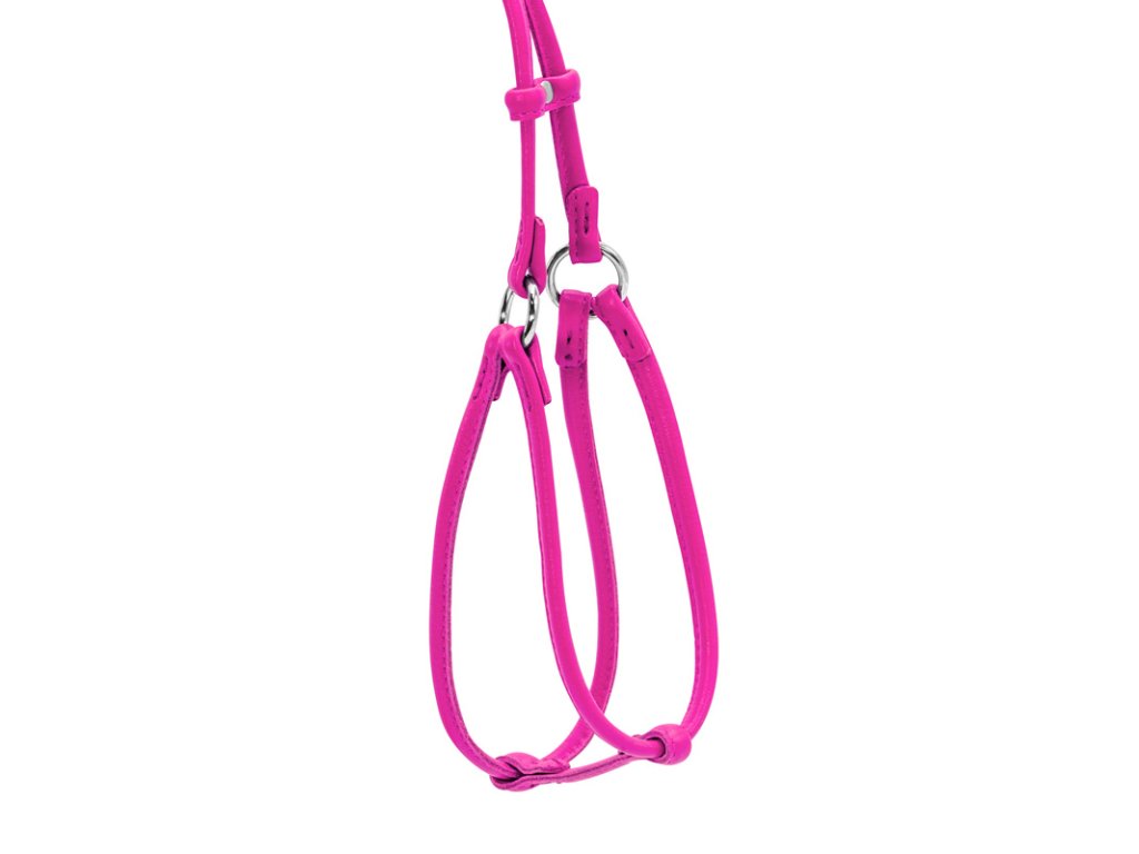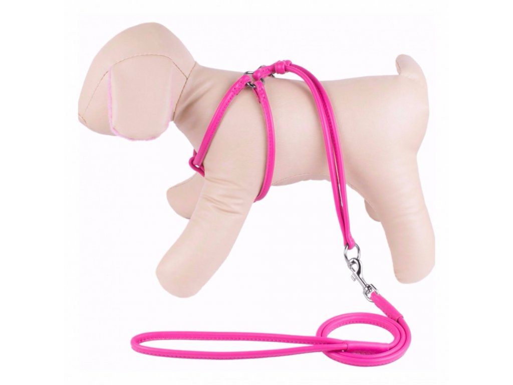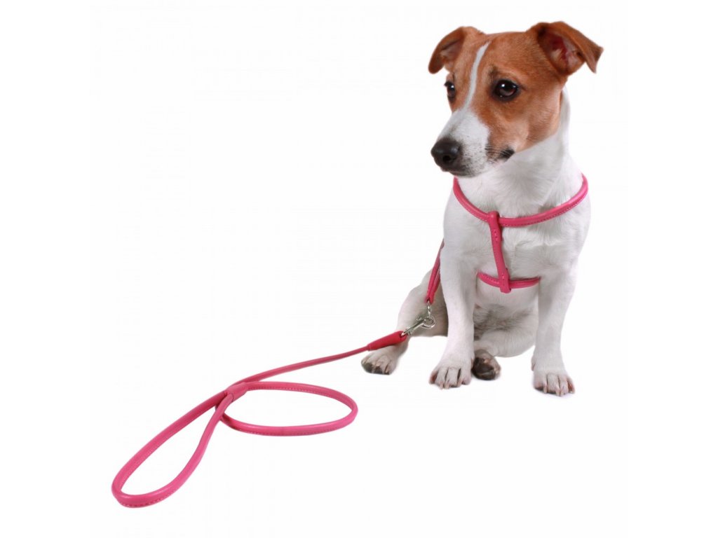 Kožený postroj s vodítkem růžový
