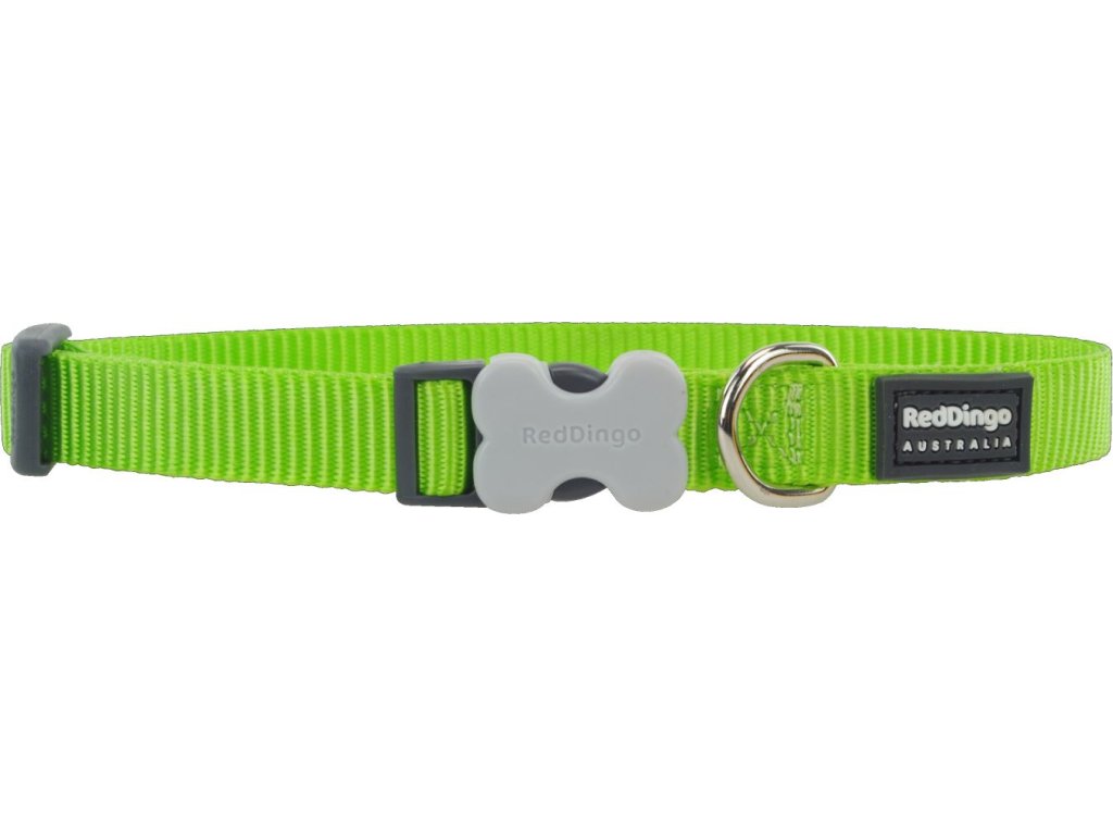 Nylonový obojek pro psa bledě zelené barvy od australské značky RED DINGO. Tyto obojky jsou velmi kvalitní, trvanlivé, pevné a vypadají na pejskovi výborně. Obojky jsou vyrobeny z velmi kvalitního a pevného nylonového materiálu. Jedinečná spona ve tvaru kosti Bucklebone je jednou z nejpevnějších spon na trhu.