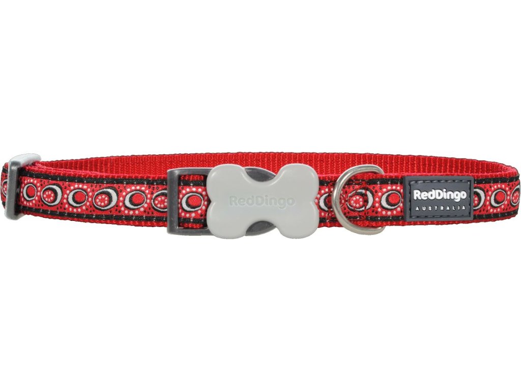 Nylonový obojek pro psa červené barvy se vzorem Cosmos od australské značky Red dingo. Tyto obojky jsou velmi kvalitní, trvanlivé, pevné a vypadají na pejskovi výborně. Obojky jsou vyrobeny z velmi kvalitního a pevného nylonového materiálu. Jedinečná spona ve tvaru kosti Bucklebone je jednou z nejpevnějších spon na trhu.