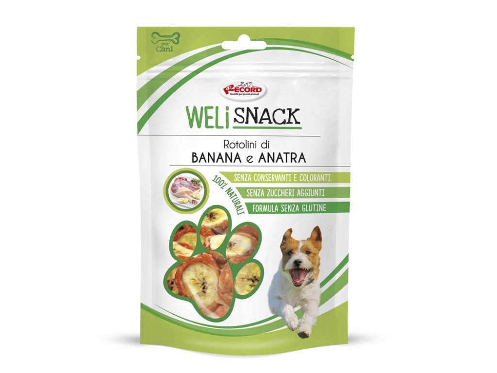 Pamlsky pro psy WELI SNACK banánové kachní role