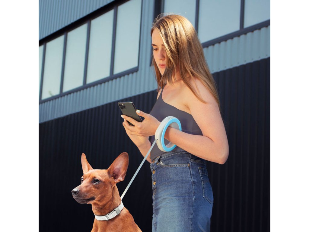 Samonavíjecí kruhové Handsfree vodítko modré