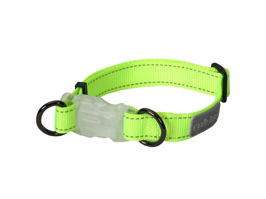 Obojek neonové barvy ideální bezpečnostní prvek během tmavých večerů pro psa, který chce být viděn. Obojek má rychloupínací zapínání na přezku s LED světlem. LED světlo lze aktivovat stisknutím tlačítka zapnutí/vypnutí pod přezkou. Pokud pes zvykne táhnout, můžete vodítko připevnit ke dvěma bezpečnostním D kroužkům, které jsou na obou stranách LED přezky. Tím se odstraní tlak z přezky a zvýší se bezpečnost. Na všech kovových částech je stylová povrchová úprava. Nastavitelný obojek má reflexní prošívání a logo. Nabíjecí pomocí USB kabelu.