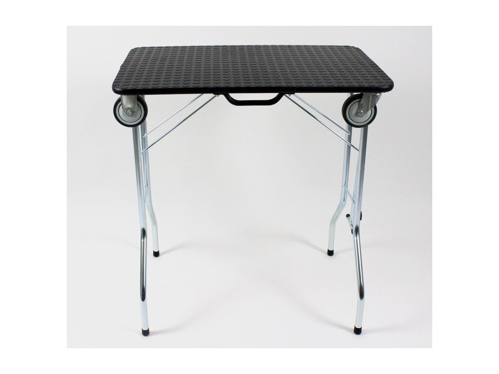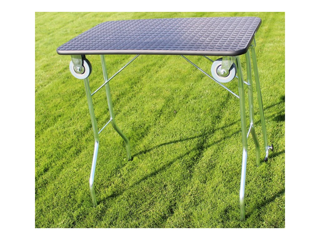 Kvalitní stolek, ruční výroba od českého výrobce. Výška stolu 85cm. rozměr pracovní plochy 90 x 55cm. Vhodný pro malá a střední plemena psů. Kolečka usnadní přepravu stolu. Stolek po složení může sloužit jako vozík na přepravku, příp. jiné vybavení vystavovatele. Omyvatelná, protiskluzová, snadno udržovatelná vrchní plocha.